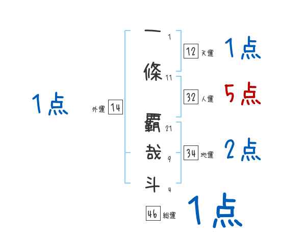 一條覇哉斗さんの画数の鑑定結果