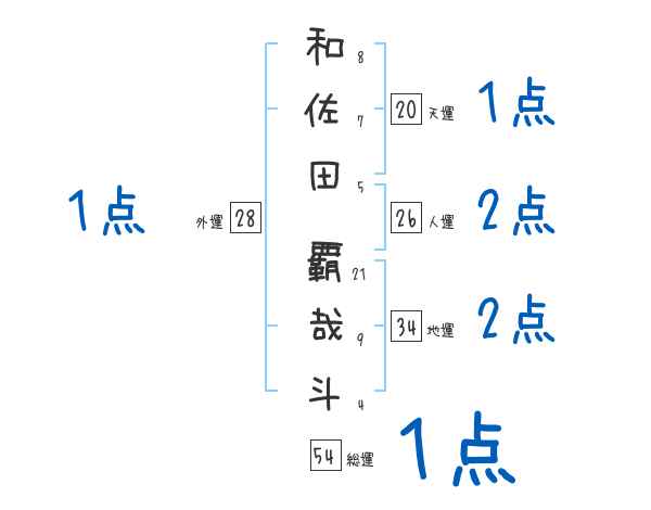 総運![]() | 和佐田覇哉斗さんの総運は54画の1つ星!トラブルが多いかも。周りをよく見て協調して過ごしましょう。 あなたの人生を表す1番重要な運勢です。生涯を通じて影響する総合運となり、主に50歳以降の晩年期に影響を及ぼします。 |