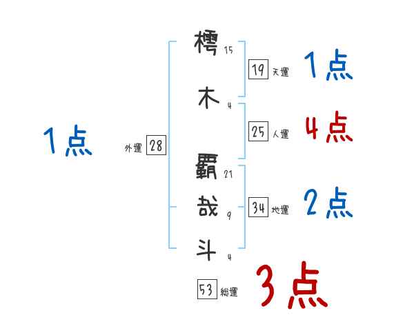 天運![]() | 樗木覇哉斗さんの天運は19画の1つ星!優れた才能を持ちますが、協調性が足りないことも。周りの人と協力する事を意識しましょう。 家系が持つ宿命的な運勢を表します。祖先から受け継いだ苗字ですので自分の力が及びません。家柄を象徴します。 |