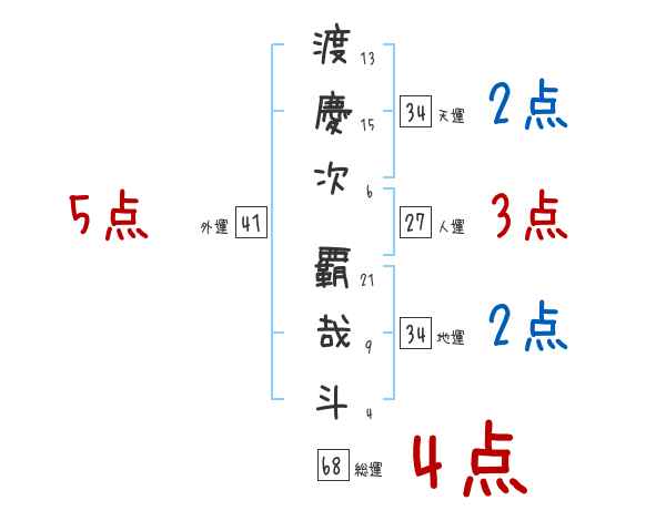渡慶次覇哉斗さんの画数の鑑定結果