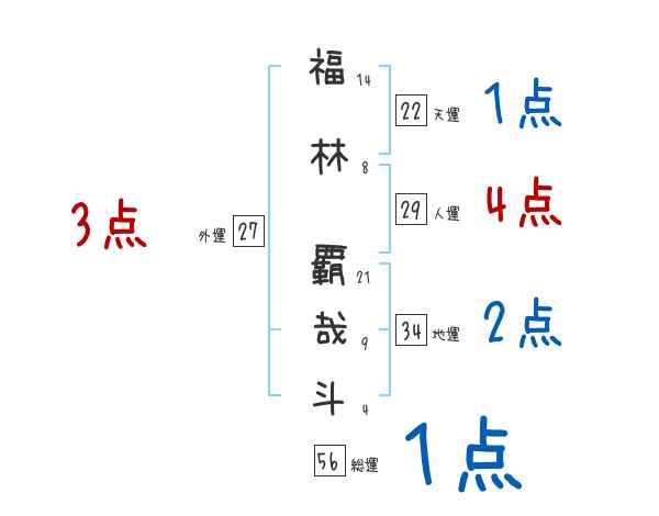 人運![]() | 福林覇哉斗さんの人運は29画の4つ星!完全主義で才能がある。厳格な心の持ち主。 性格や才能などを表す2番目に重要な運勢です。人間関係や協調性、社会的な成功に影響します。主に20歳から50歳ぐらいまでの中年期の運勢を表します。 |