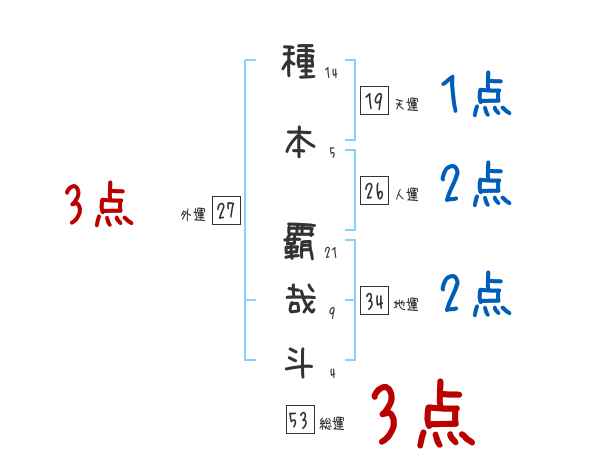 総運![]() | 種本覇哉斗さんの総運は53画の3つ星!やや見栄っ張りで虚栄心がある。散財に注意。 あなたの人生を表す1番重要な運勢です。生涯を通じて影響する総合運となり、主に50歳以降の晩年期に影響を及ぼします。 |