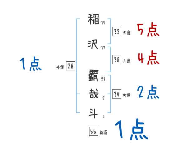 天運![]() | 稲沢覇哉斗さんの天運は32画の5つ星!柔軟性があり成功する。チャンスが多く金運が良い。 家系が持つ宿命的な運勢を表します。祖先から受け継いだ苗字ですので自分の力が及びません。家柄を象徴します。 |