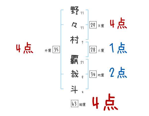 野々村覇哉斗さんの画数の鑑定結果