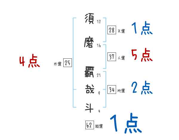 天運![]() | 須磨覇哉斗さんの天運は28画の1つ星!家庭環境に注意。スポーツで活躍できる能力があるかも。 家系が持つ宿命的な運勢を表します。祖先から受け継いだ苗字ですので自分の力が及びません。家柄を象徴します。 |