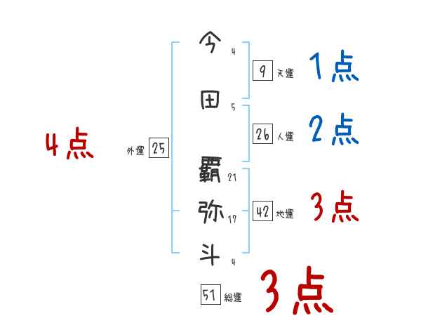 天運![]() | 今田覇弥斗さんの天運は9画の1つ星!消極的で才能を発揮することが苦手なことも。周りの意見に耳を傾けましょう。 家系が持つ宿命的な運勢を表します。祖先から受け継いだ苗字ですので自分の力が及びません。家柄を象徴します。 |