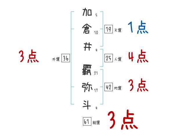 加倉井覇弥斗さんの画数の鑑定結果