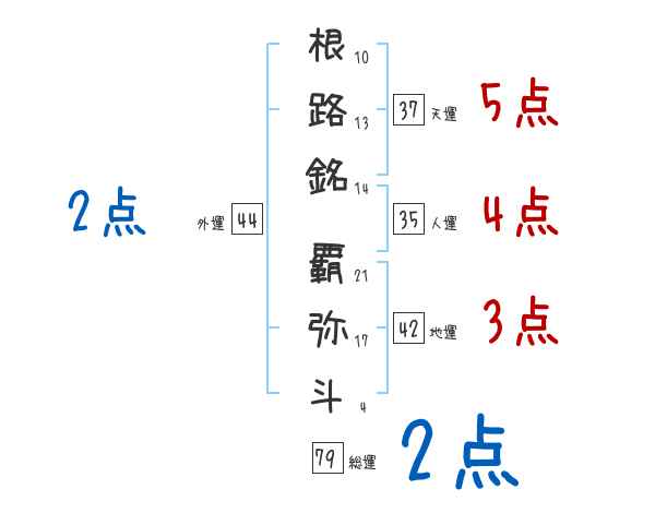 根路銘覇弥斗さんの画数の鑑定結果