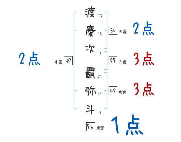 渡慶次覇弥斗さんの外運は49画の2つ星