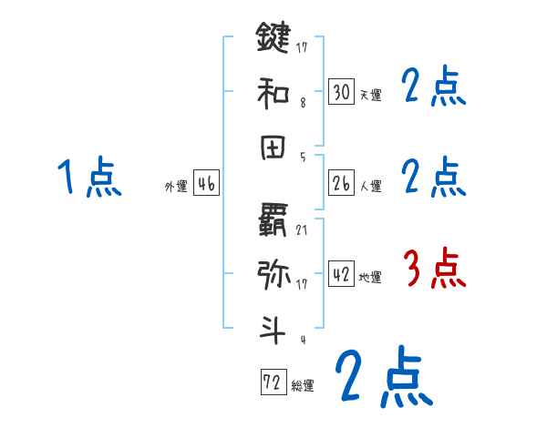 地運![]() | 鍵和田覇弥斗さんの地運は42画の3つ星!病気に注意。多芸であるが消極的でおとなしい。 個性を表す基礎的な運勢です。性格形成や対人関係、行動力など家庭環境に影響されます。主に誕生してから20歳くらいまでの若年期の運勢を表します。 |