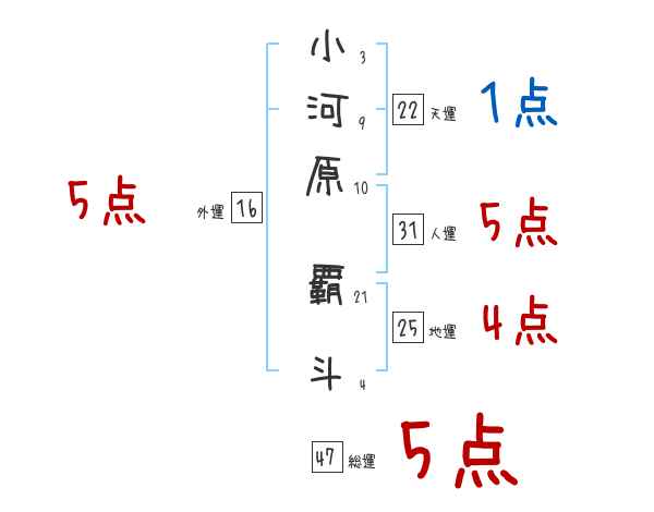 小河原覇斗さんの画数の鑑定結果
