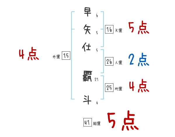 早矢仕覇斗さんの画数の鑑定結果