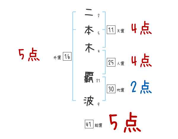 二本木覇波さんの画数の鑑定結果