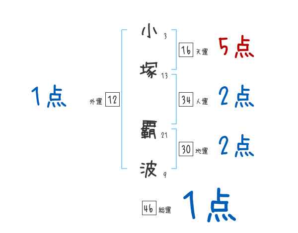 天運![]() | 小塚覇波さんの天運は16画の5つ星!人望が厚く大きく発展する。逆転成功が見える。 家系が持つ宿命的な運勢を表します。祖先から受け継いだ苗字ですので自分の力が及びません。家柄を象徴します。 |