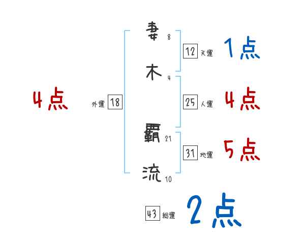 総運![]() | 妻木覇流さんの総運は43画の2つ星!頑固な性格で独立心が強いかも。やや非現実的で浪費に注意しましょう。 あなたの人生を表す1番重要な運勢です。生涯を通じて影響する総合運となり、主に50歳以降の晩年期に影響を及ぼします。 |