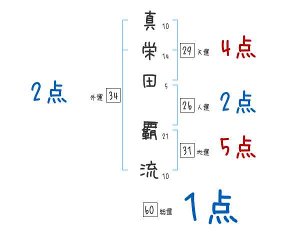 天運![]() | 真栄田覇流さんの天運は29画の4つ星!完全主義で才能がある。厳格な心の持ち主。 家系が持つ宿命的な運勢を表します。祖先から受け継いだ苗字ですので自分の力が及びません。家柄を象徴します。 |