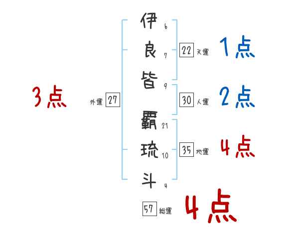 伊良皆覇琉斗さんの外運は27画の3つ星