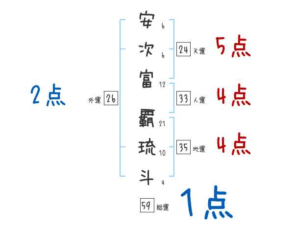 安次富覇琉斗さんの画数の鑑定結果