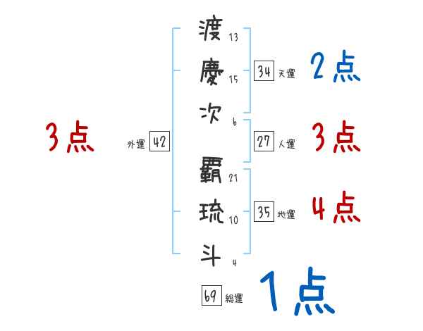 渡慶次覇琉斗さんの画数の鑑定結果
