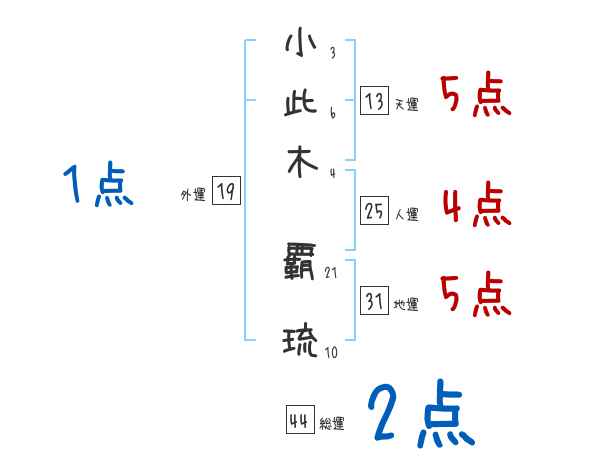 小此木覇琉さんの画数の鑑定結果