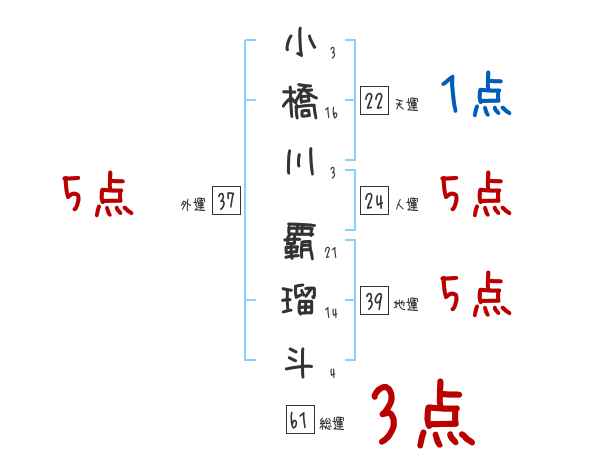 小橋川覇瑠斗さんの画数の鑑定結果