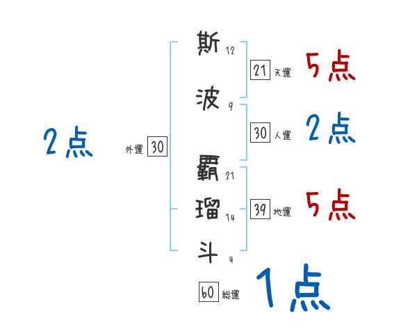 天運![]() | 斯波覇瑠斗さんの天運は21画の5つ星!統率力がある。独立し成功する。名誉を手に入れる。 家系が持つ宿命的な運勢を表します。祖先から受け継いだ苗字ですので自分の力が及びません。家柄を象徴します。 |