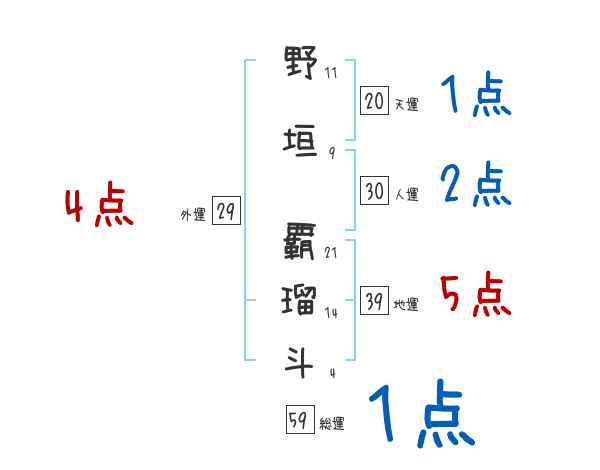 外運![]() | 野垣覇瑠斗さんの外運は29画の4つ星!完全主義で才能がある。厳格な心の持ち主。 生活面を象徴する運勢です。外部から受ける影響力を表し、結婚運、家庭運や職場、環境への順応性を表します。 |