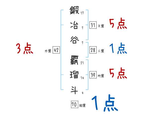 鍛冶谷覇瑠斗さんの画数の鑑定結果