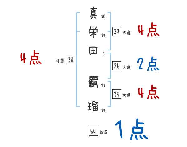 真栄田覇瑠さんの画数の鑑定結果