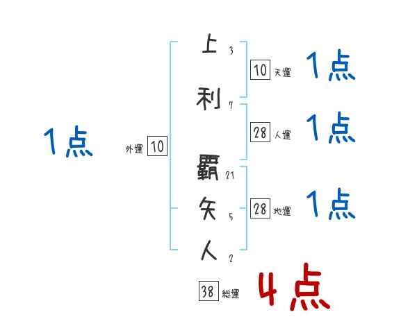 外運![]() | 上利覇矢人さんの外運は10画の1つ星!不安を感じやすい傾向。ストレスを抱えないように注意しましょう。 生活面を象徴する運勢です。外部から受ける影響力を表し、結婚運、家庭運や職場、環境への順応性を表します。 |