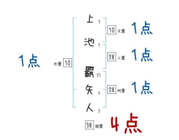 上池覇矢人さんの画数の鑑定結果