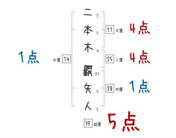天運![]() | 二本木覇矢人さんの天運は11画の4つ星!着実に富や地位を得る幸運な人生。 家系が持つ宿命的な運勢を表します。祖先から受け継いだ苗字ですので自分の力が及びません。家柄を象徴します。 |