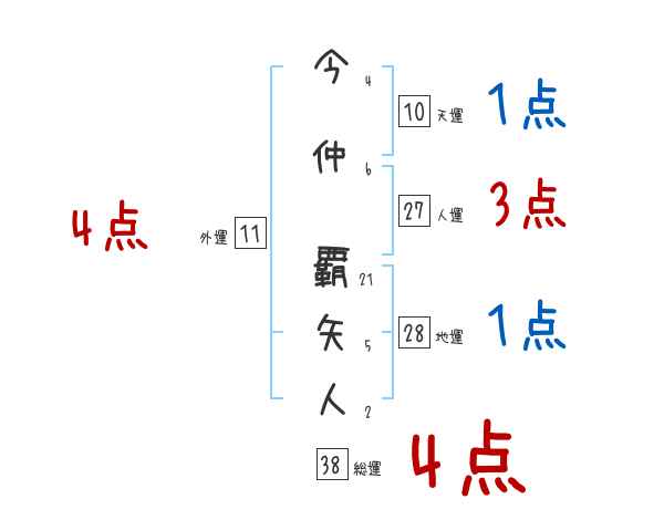 天運![]() | 今仲覇矢人さんの天運は10画の1つ星!不安を感じやすい傾向。ストレスを抱えないように注意しましょう。 家系が持つ宿命的な運勢を表します。祖先から受け継いだ苗字ですので自分の力が及びません。家柄を象徴します。 |