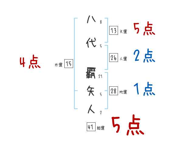 八代覇矢人さんの画数の鑑定結果
