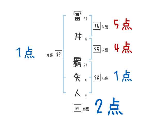 天運![]() | 冨井覇矢人さんの天運は16画の5つ星!人望が厚く大きく発展する。逆転成功が見える。 家系が持つ宿命的な運勢を表します。祖先から受け継いだ苗字ですので自分の力が及びません。家柄を象徴します。 |