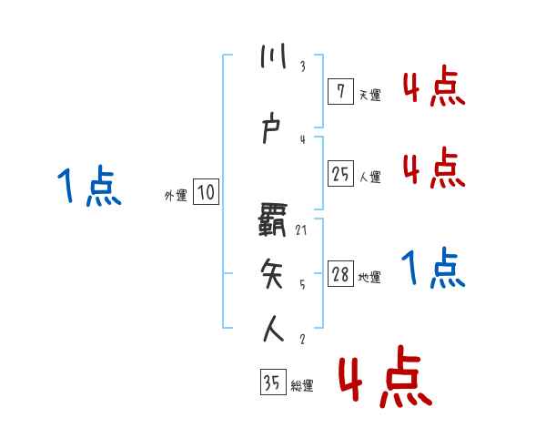川戸覇矢人さんの画数の鑑定結果