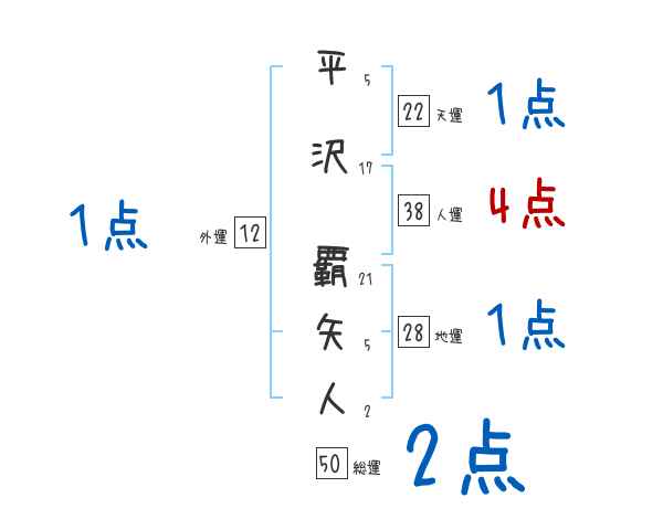 総運![]() | 平沢覇矢人さんの総運は50画の2つ星!浮き沈みが激しく不安定。しりすぼみに衰退しやすいので注意しましょう。 あなたの人生を表す1番重要な運勢です。生涯を通じて影響する総合運となり、主に50歳以降の晩年期に影響を及ぼします。 |