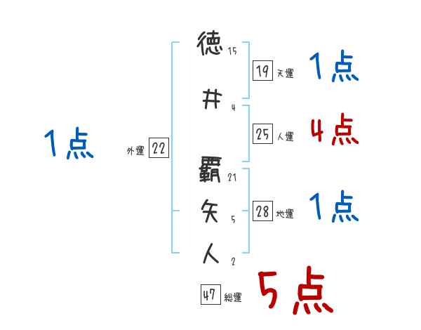 天運![]() | 徳井覇矢人さんの天運は19画の1つ星!優れた才能を持ちますが、協調性が足りないことも。周りの人と協力する事を意識しましょう。 家系が持つ宿命的な運勢を表します。祖先から受け継いだ苗字ですので自分の力が及びません。家柄を象徴します。 |