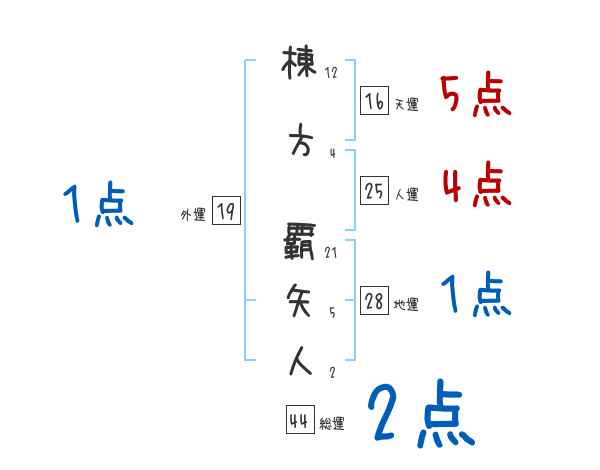 地運![]() | 棟方覇矢人さんの地運は28画の1つ星!家庭環境に注意。スポーツで活躍できる能力があるかも。 個性を表す基礎的な運勢です。性格形成や対人関係、行動力など家庭環境に影響されます。主に誕生してから20歳くらいまでの若年期の運勢を表します。 |