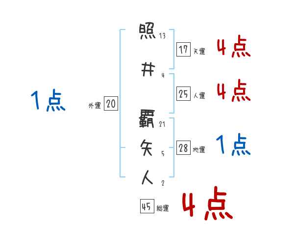 総運![]() | 照井覇矢人さんの総運は45画の4つ星!もくもくと物事を進め達成する。地味な努力家。 あなたの人生を表す1番重要な運勢です。生涯を通じて影響する総合運となり、主に50歳以降の晩年期に影響を及ぼします。 |
