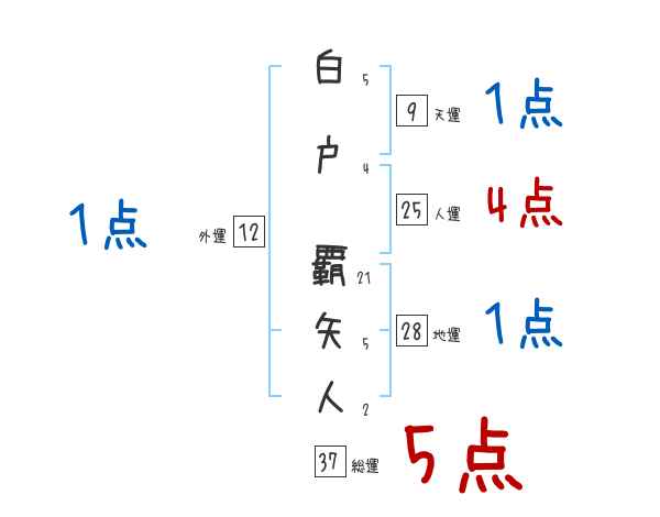 天運![]() | 白戸覇矢人さんの天運は9画の1つ星!消極的で才能を発揮することが苦手なことも。周りの意見に耳を傾けましょう。 家系が持つ宿命的な運勢を表します。祖先から受け継いだ苗字ですので自分の力が及びません。家柄を象徴します。 |