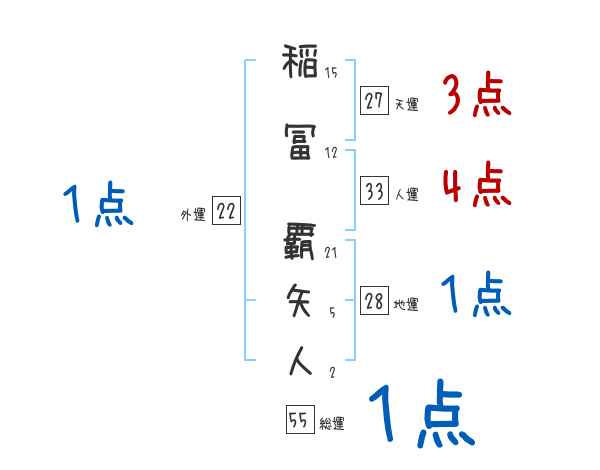 稲冨覇矢人さんの画数の鑑定結果