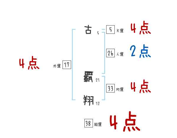 古覇翔さんの画数の鑑定結果