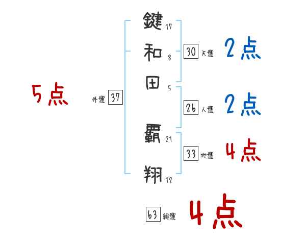 外運![]() | 鍵和田覇翔さんの外運は37画の5つ星!努力家で順応性に優れる。現実的な考え方ができ忠実に物事をこなす。 生活面を象徴する運勢です。外部から受ける影響力を表し、結婚運、家庭運や職場、環境への順応性を表します。 |