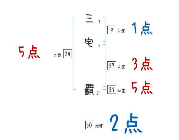 天運![]() | 三宅覇さんの天運は9画の1つ星!消極的で才能を発揮することが苦手なことも。周りの意見に耳を傾けましょう。 家系が持つ宿命的な運勢を表します。祖先から受け継いだ苗字ですので自分の力が及びません。家柄を象徴します。 |