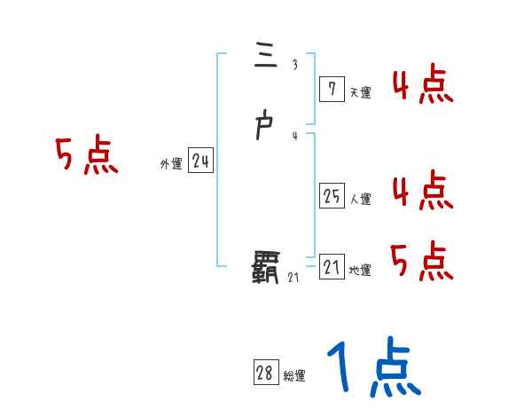 三戸覇さんの画数の鑑定結果