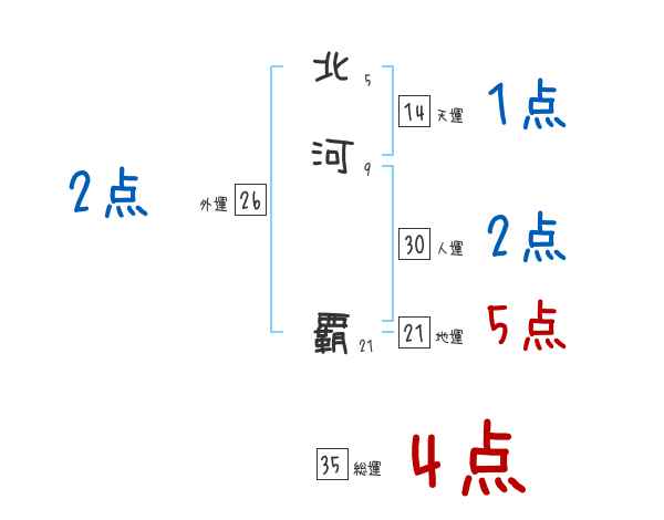 天運![]() | 北河覇さんの天運は14画の1つ星!人に対して優しいがストレスを溜め込みがち。人間関係のトラブルを避けるよう気をつけましょう。 家系が持つ宿命的な運勢を表します。祖先から受け継いだ苗字ですので自分の力が及びません。家柄を象徴します。 |