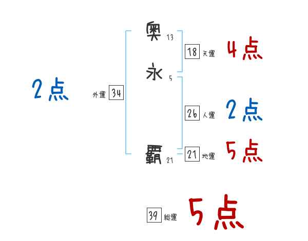 天運![]() | 奥永覇さんの天運は18画の4つ星!情熱的で剛気。忍耐力があり信頼される。 家系が持つ宿命的な運勢を表します。祖先から受け継いだ苗字ですので自分の力が及びません。家柄を象徴します。 |