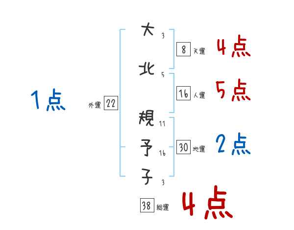 天運![]() | 大北規予子さんの天運は8画の4つ星!勤勉家。根気強く努力し成功する。忍耐力がある。 家系が持つ宿命的な運勢を表します。祖先から受け継いだ苗字ですので自分の力が及びません。家柄を象徴します。 |