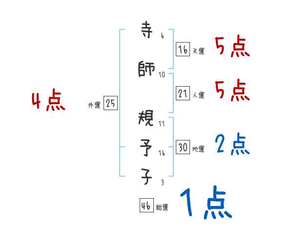 天運![]() | 寺師規予子さんの天運は16画の5つ星!人望が厚く大きく発展する。逆転成功が見える。 家系が持つ宿命的な運勢を表します。祖先から受け継いだ苗字ですので自分の力が及びません。家柄を象徴します。 |